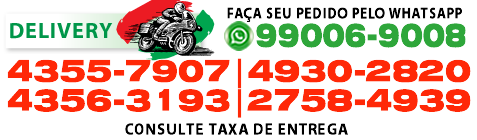 ESPECIAISDOIS QUEIJOSMussarela e catupiry. NAMORADOPalmito, catupiry e mussarela. ESCAROLAEscarola, bacon e mussarela ou catupiry. RÚCULAMussarela, rúcula e tomate seco. CALABRESACalabresa e cebola. BRÓCOLISBrócolis, bacon, catupiry LOMBINHOLombo com catupiry ou mussarela. ATUMAtum, tomate com catupiry ou mussarela. PEPERONIPeperoni com catupiry ou mussarela. MILHOMilho com catupiry ou mussarela. BACONBacon com catupiry ou mussarela.
